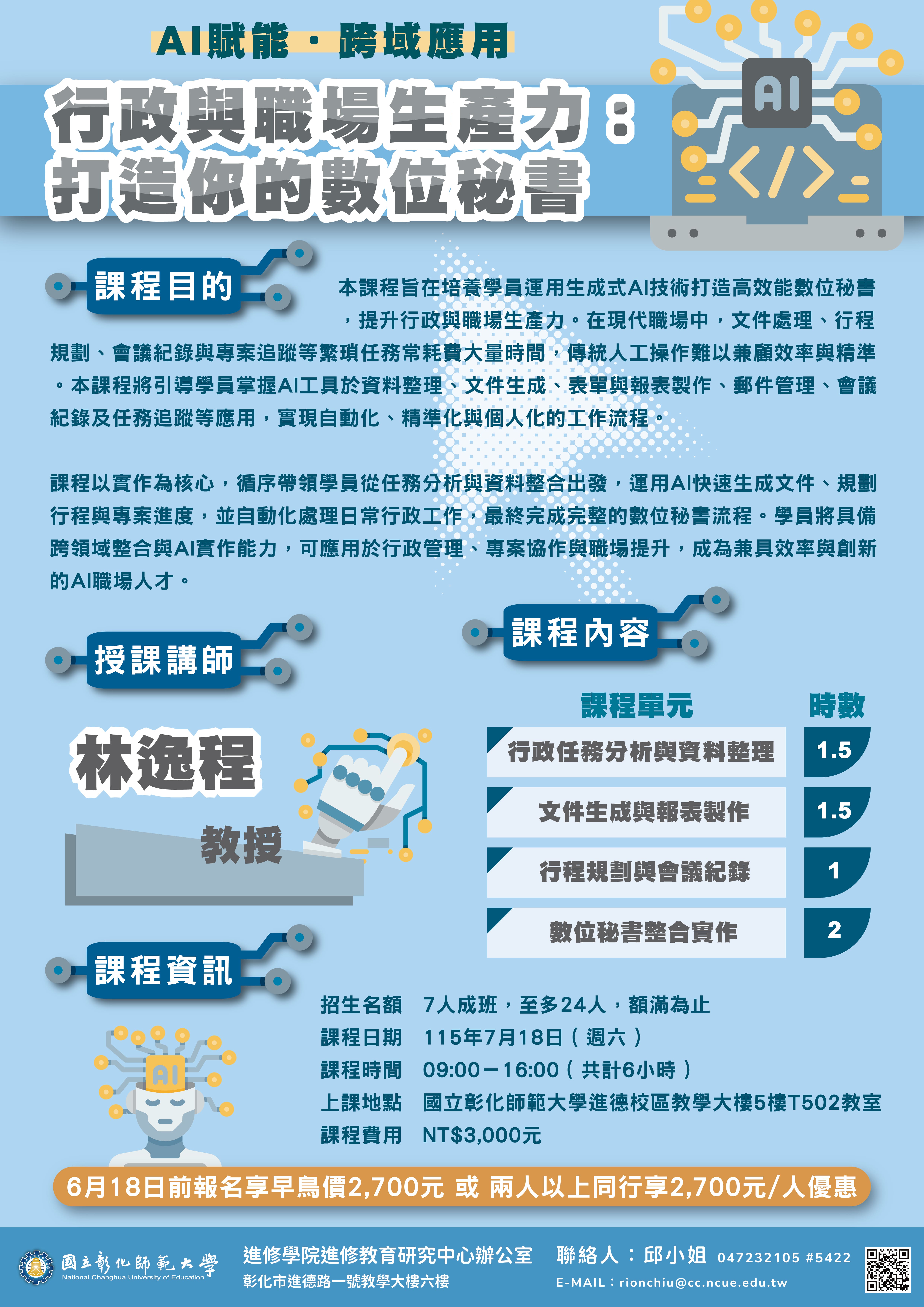 「【AI賦能.跨域應用】 行政與職場生產力:打造你的數位秘書」 |