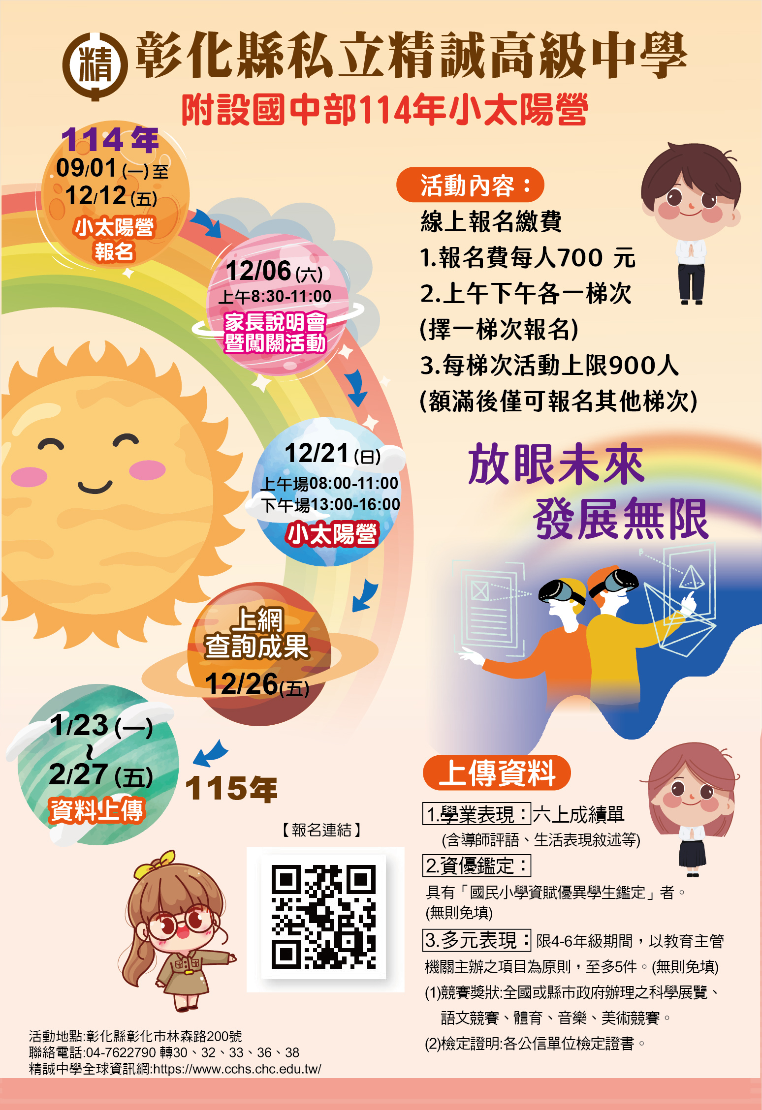 | 二、 | 報名網址https://reg.cchs.chc.edu.tw/ischool/publish_page/13/ |